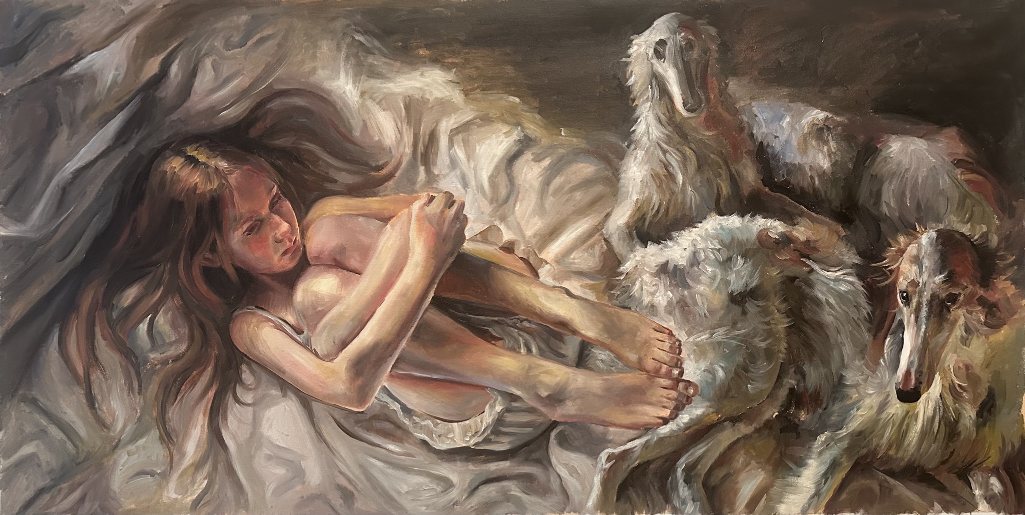 My work explores vulnerability, intimacy, and psychological tension through solitary figures—often children or young women—placed in ambiguous, symbolic settings. I use the body as a vehicle for emotional gesture, suspended between stillness and unease.